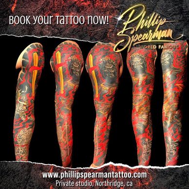At Phillip Spearman Tattoo, Master Tattoo Artist Phillip Spearman takes pride in being the ultimate destination for the finest tattoos in Northridge, CA. Phillip Spearman is a Master tattoo artist that specializes in a wide range of tattoo styles, ensuring that you'll find the perfect artist for your unique vision. Whether you're interested in back piece tattoos, best Japanese tattoo, best portrait tattoo, or black and grey tattoos, color tattoos, coverups, sleeves, back pieces, He got you covered.